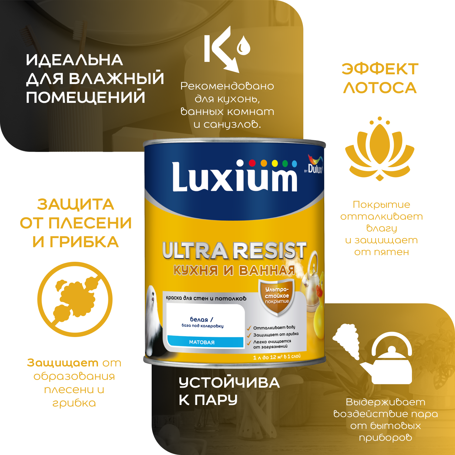 Краска Luxium ULTRA RESIST кухня и ванная