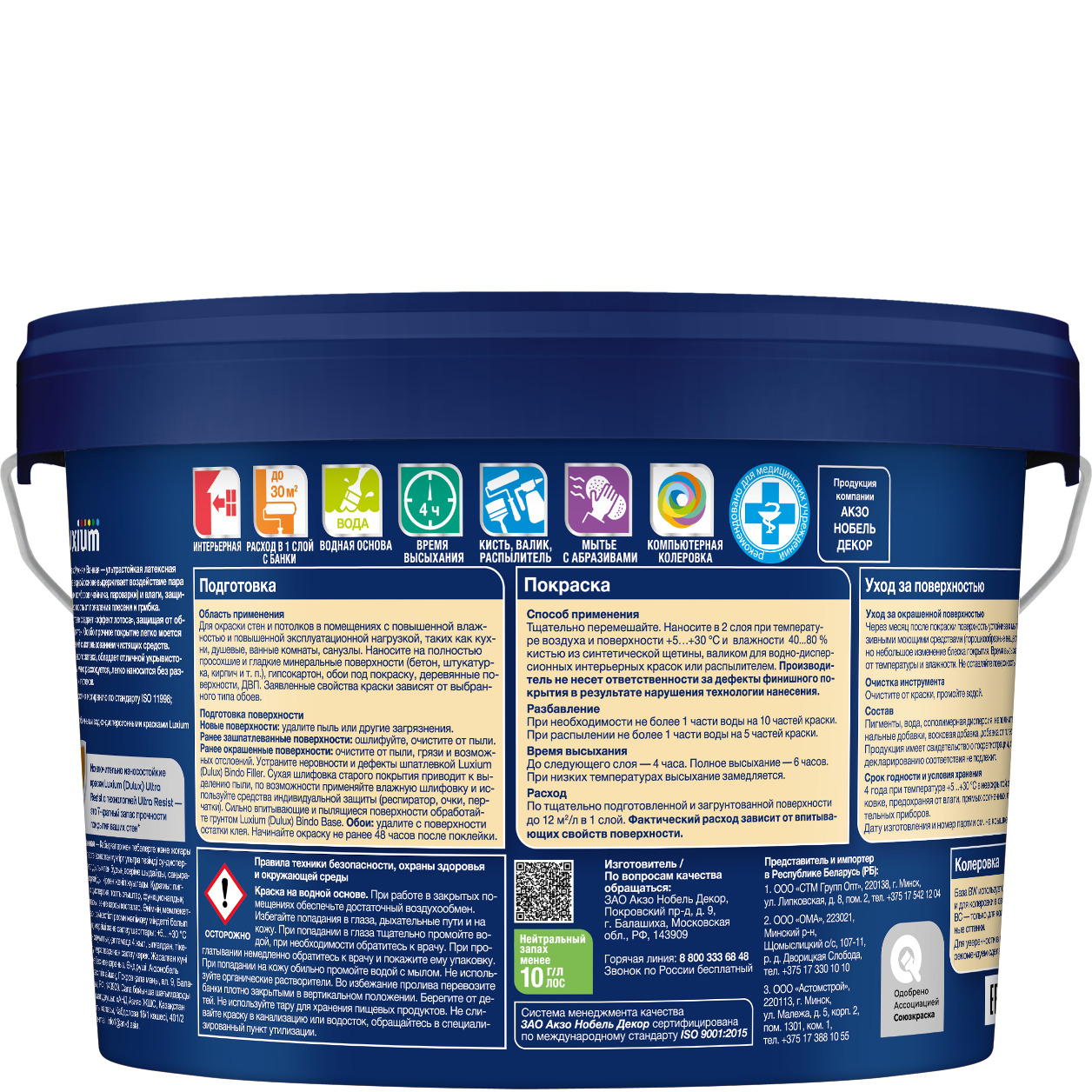 Ультрастойкая водно-дисперсионная краска выдерживает воздействие пара и влаги, защищает поверхность от появления грибка и водорослей, легко моется от загрязнений с использованием чистящих средств. Новые, исключительно износостойкие краски Luxium Ultra Resist с технологией Ultra Resist – это 7-кратный запас прочности покрытия ваших стен.